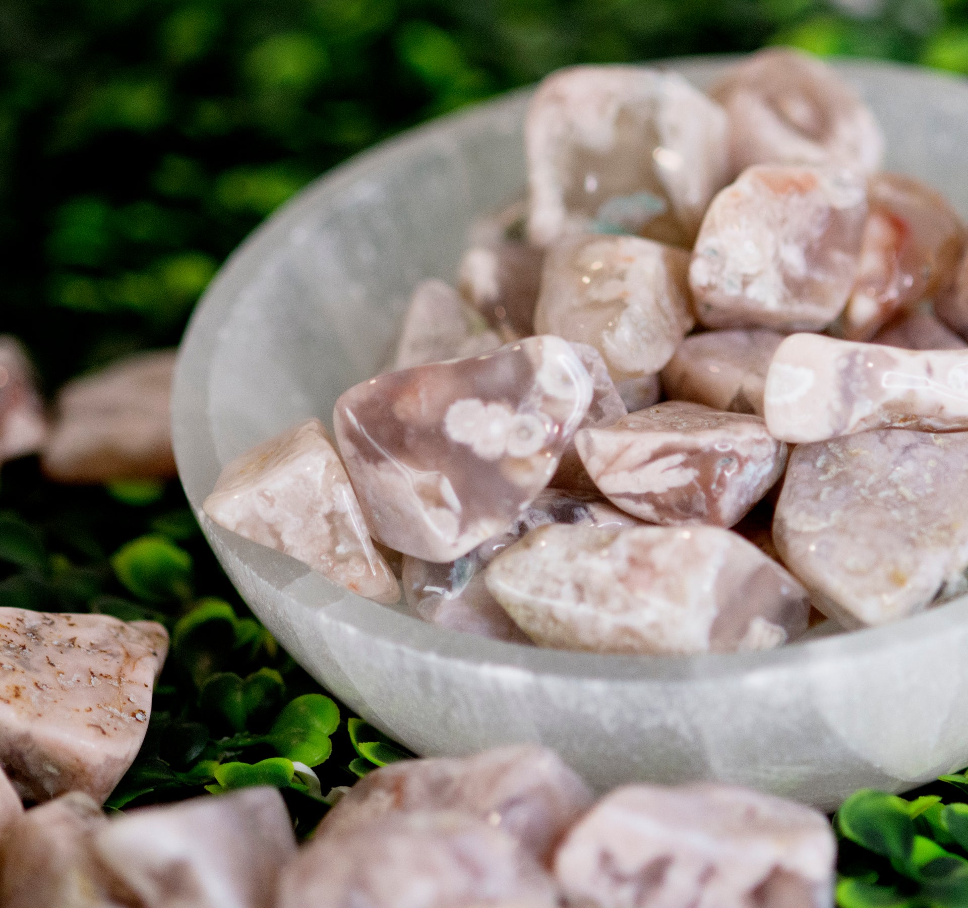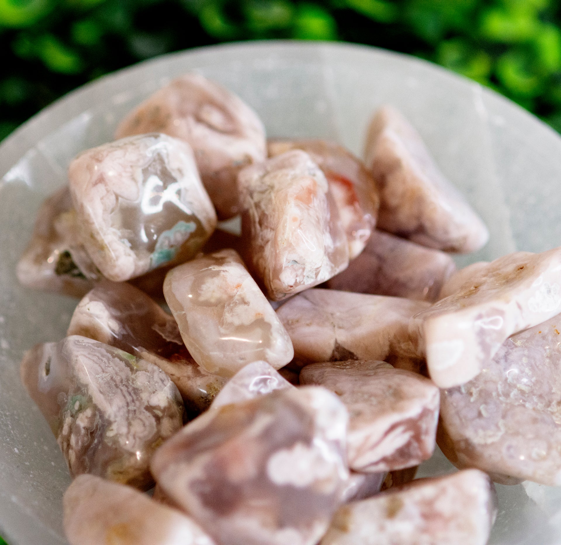 Flower Agate is an uplifting stone with a soft feminine vibration which allows one to bloom into a new life after a trauma or crisis, or other times of trouble. Flower Agate encourages creativity, and is the perfect stone for new business owners looking to grow their business, or for those undertaking a new journey.