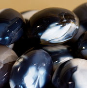 Orca agate is considered a semi-precious stone, and it is often polished and cut into cabochons or beads for use in jewelry. It is also sometimes tumbled to create a smooth, polished finish. Orca agate is believed to have healing properties and is often used in crystal healing practices. It is said to help with stress and anxiety, and to promote balance and harmony.