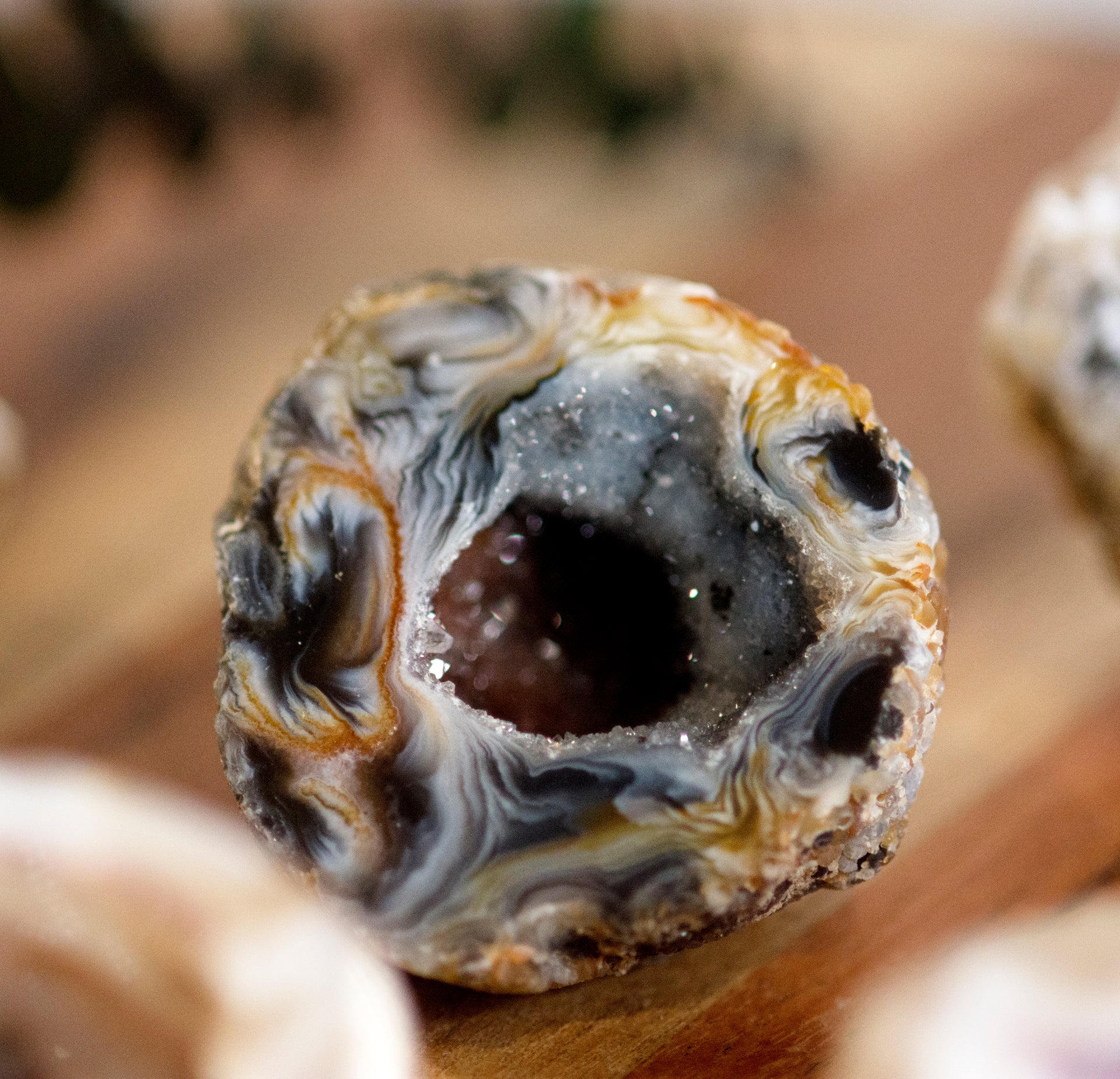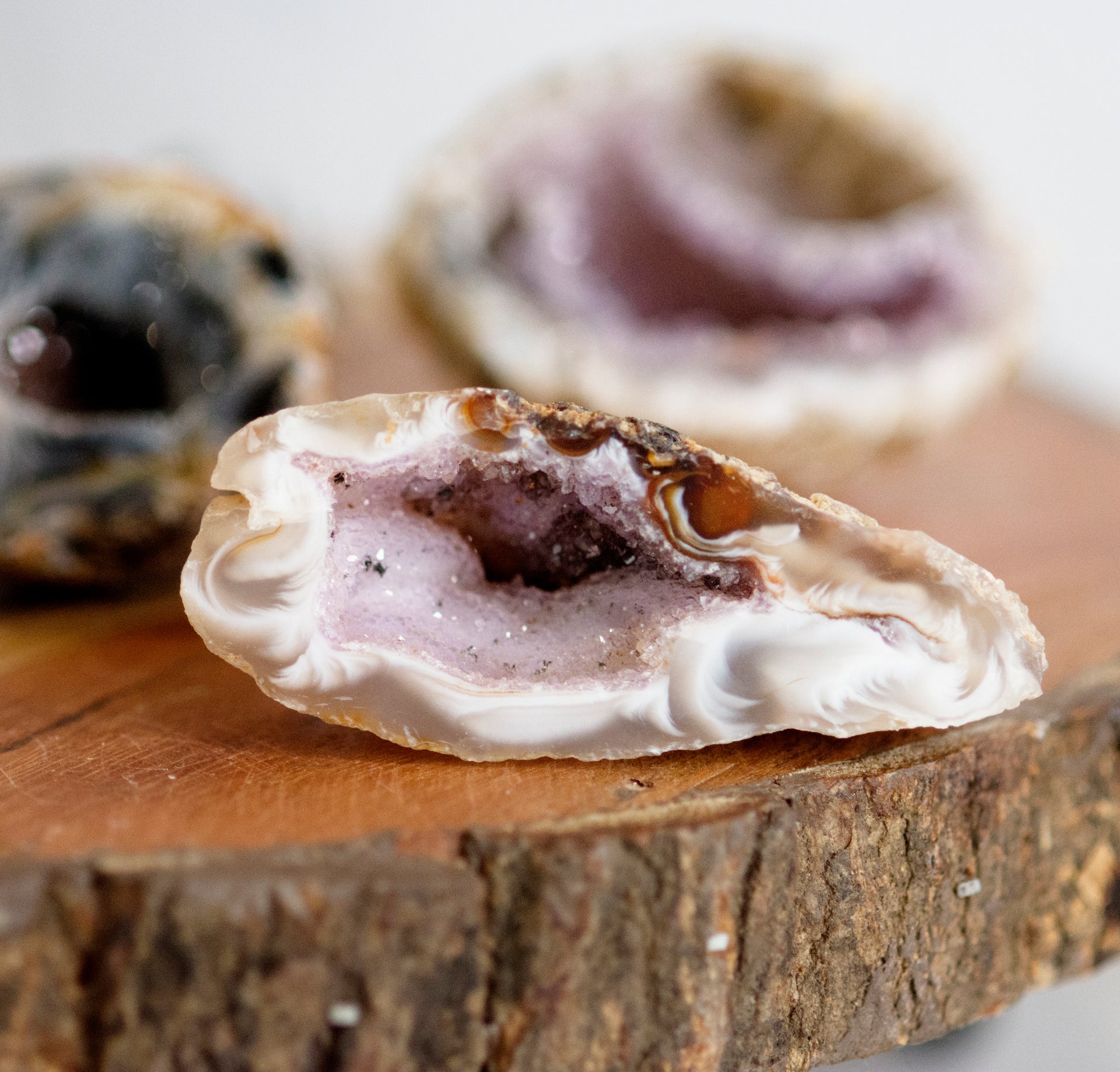 Oco geodes are a type of geode that is formed when gas bubbles become trapped in lava or ash. As the lava or ash cools, minerals begin to crystallize within the bubble, forming a cavity. Over time, the cavity becomes filled with mineral crystals, creating a geode. Oco geodes are found in a variety of locations around the world, including Brazil, Mexico, and the United States.