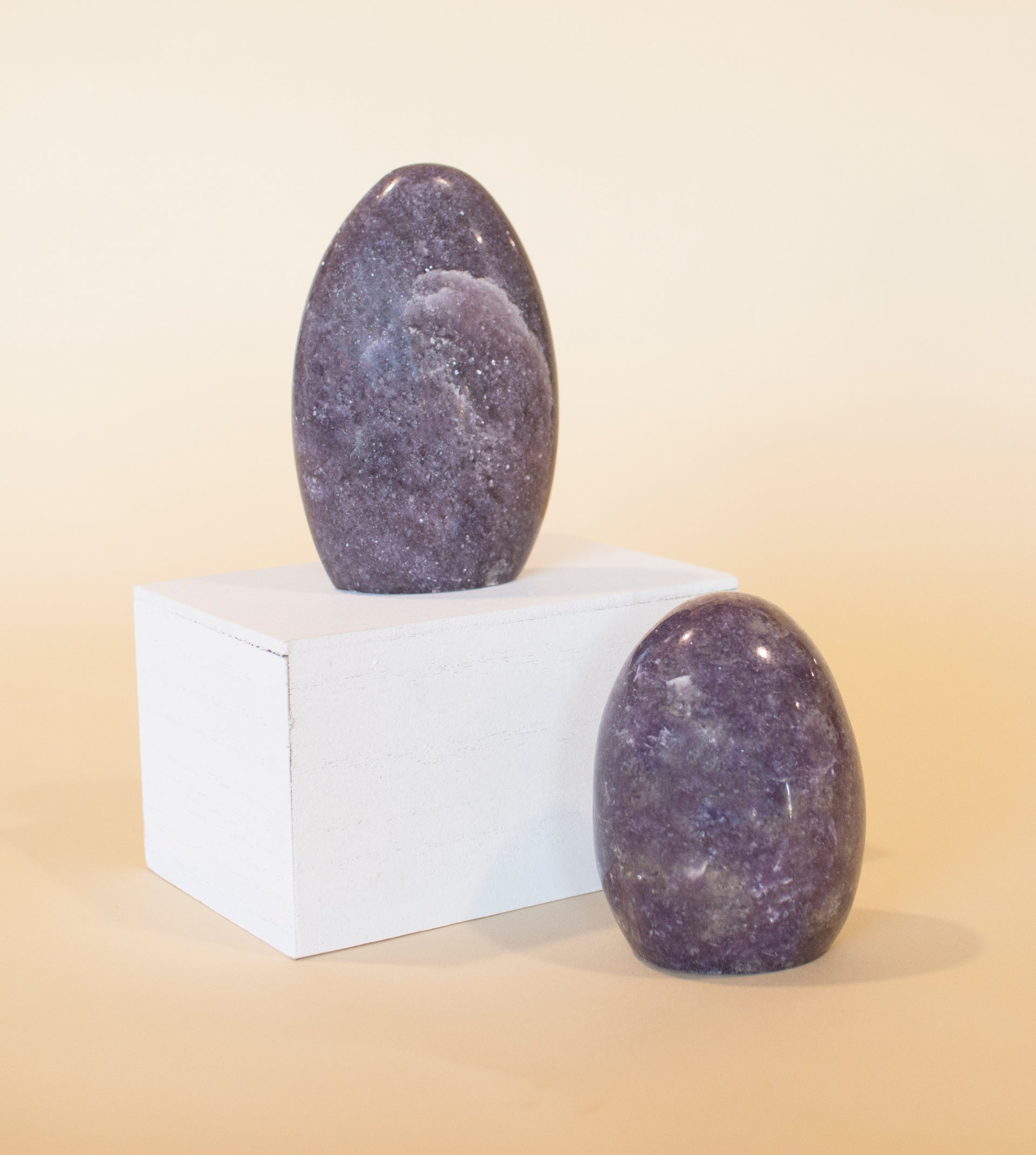 Lepidolite is considered a “Stone of Transformation.” It brings self-awareness and guidance when making positive changes in life. Lepidolite naturally contains lithium which relieves stress and anxiety and helps stabilize emotions. It helps one handle stressful situations while preserving integrity and well-being. Lepidolite works with all chakras, especially the Heart, Third-Eye, and Crown Chakras. Lepidolite can help transmute electromagnetic pollution when placed within the area of the source of EMF’s.
