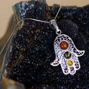 Hamsa stones are gemstones that are believed to have protective properties and are sometimes used in the creation of hamsa jewelry. The specific type of stone used can vary, and hamsa stones may include a variety of gemstones such as amethyst, turquoise, or carnelian. Hamsa stones are often believed to bring good luck and protection to the wearer, and they are sometimes used in crystal healing practices.