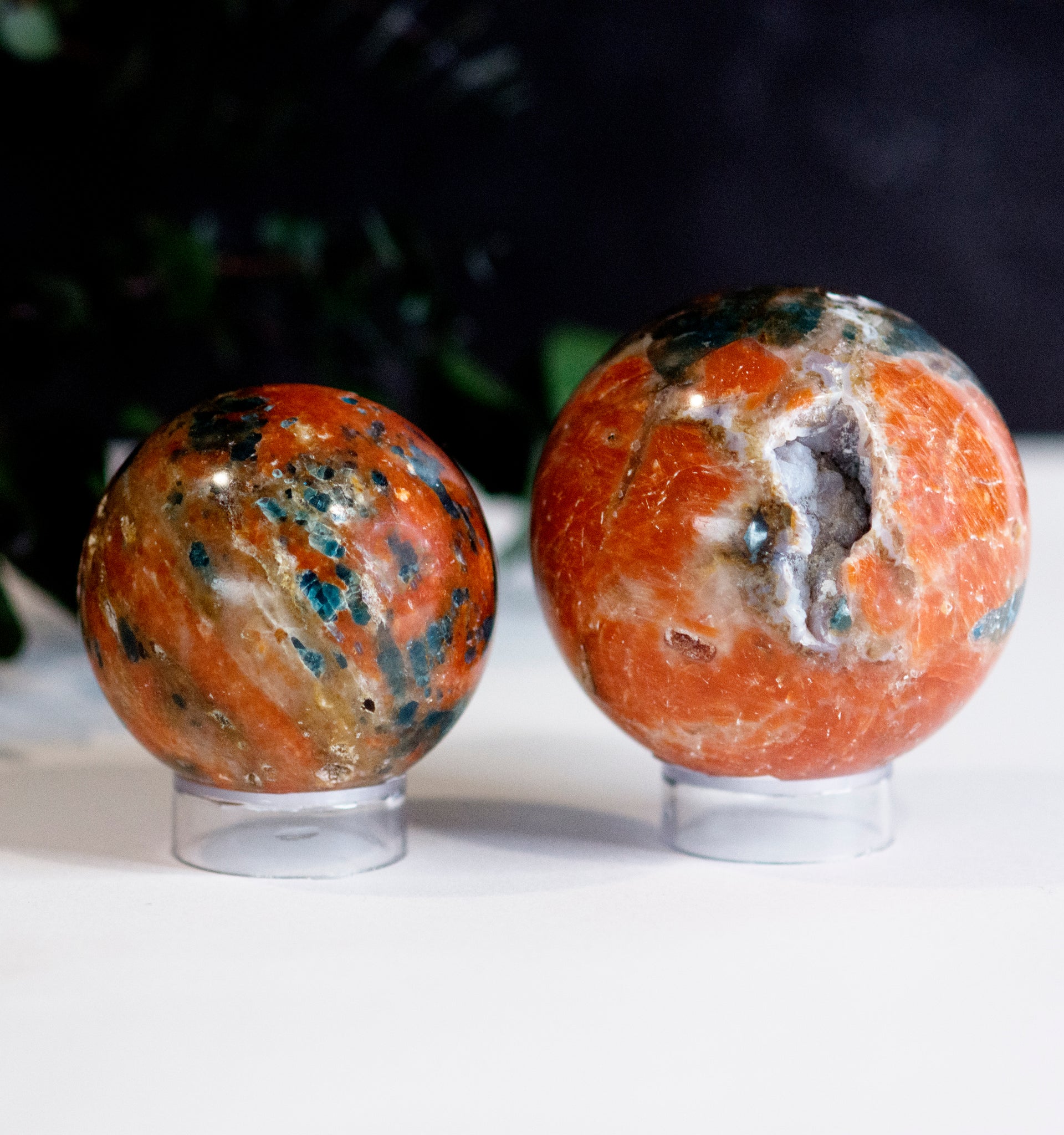 Healing properties: Orange calcite is believed to have a range of healing properties and is often used in crystal healing practices. It is said to promote feelings of joy and positivity, and is also thought to help with digestion and metabolism.