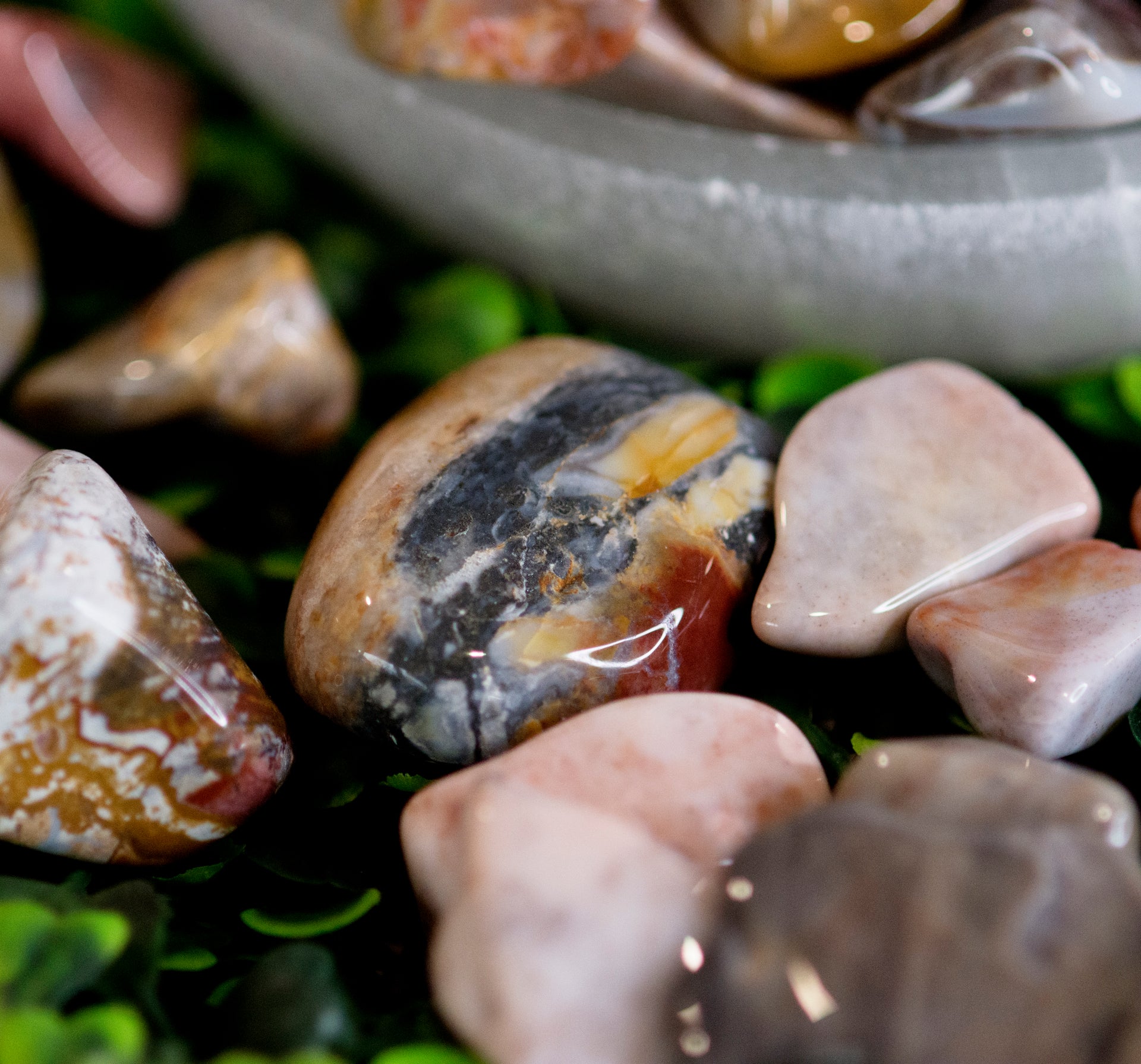 Tumble stones are small, smooth, polished stones that are typically used for decorative or therapeutic purposes. They are often made from a variety of different types of stone, including flint, and are typically polished to a high shine using abrasive materials.