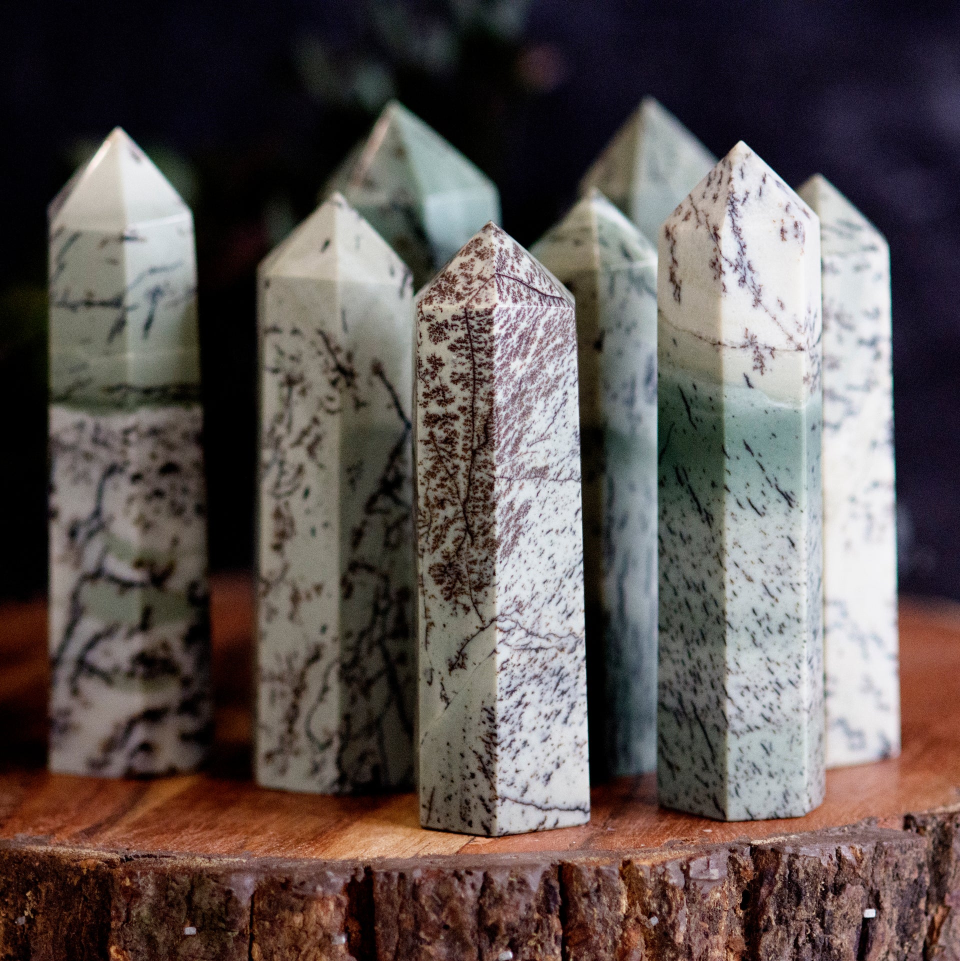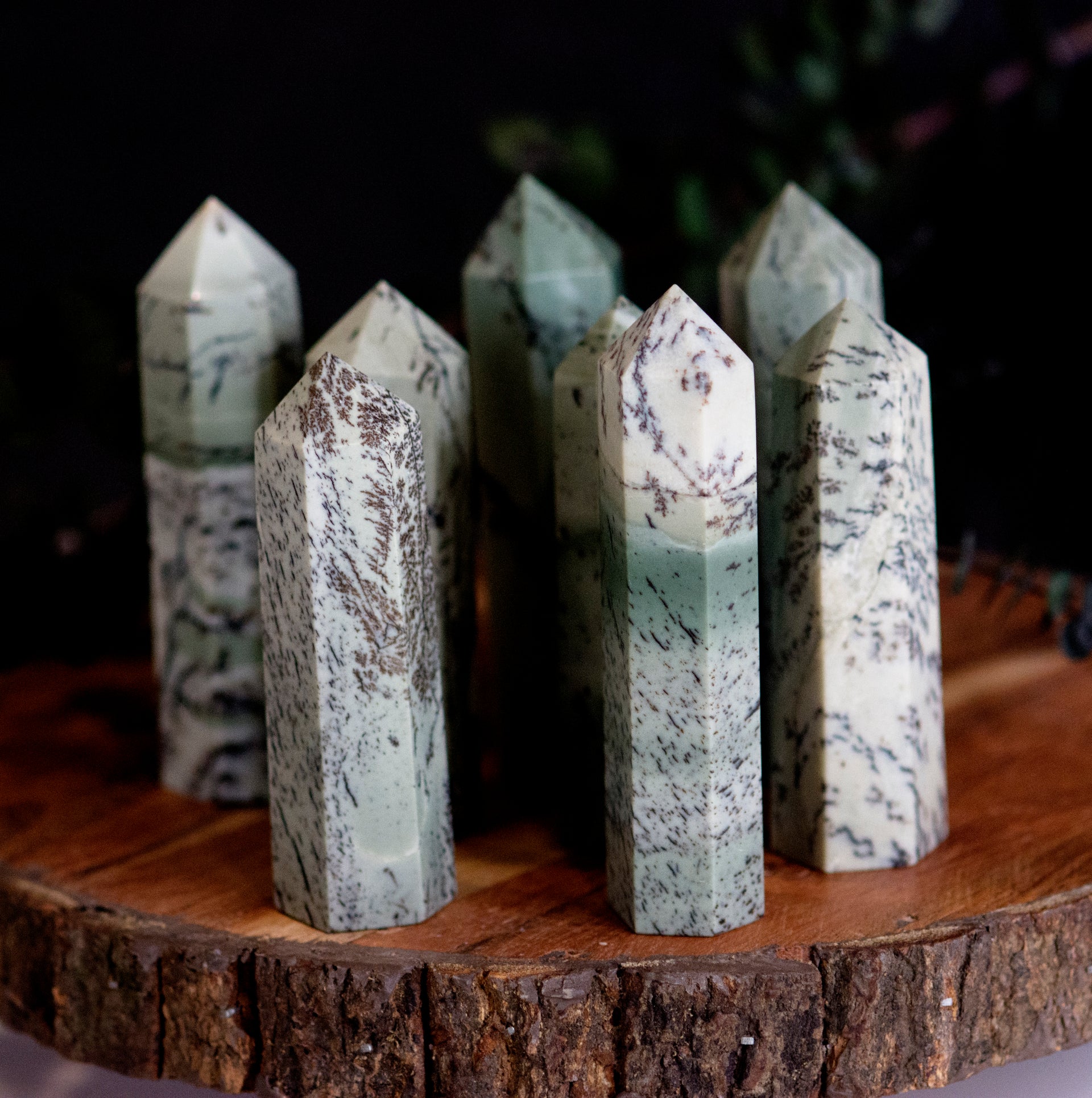 Dendritic jades are prized for their unique and intricate patterns, which can vary widely in appearance. They are often used in jewelry and decorative objects, and are believed to have a number of healing properties. Dendritic jades are thought to be grounding stones that can help to promote balance and stability, and are also believed to have the ability to help people connect with nature.
